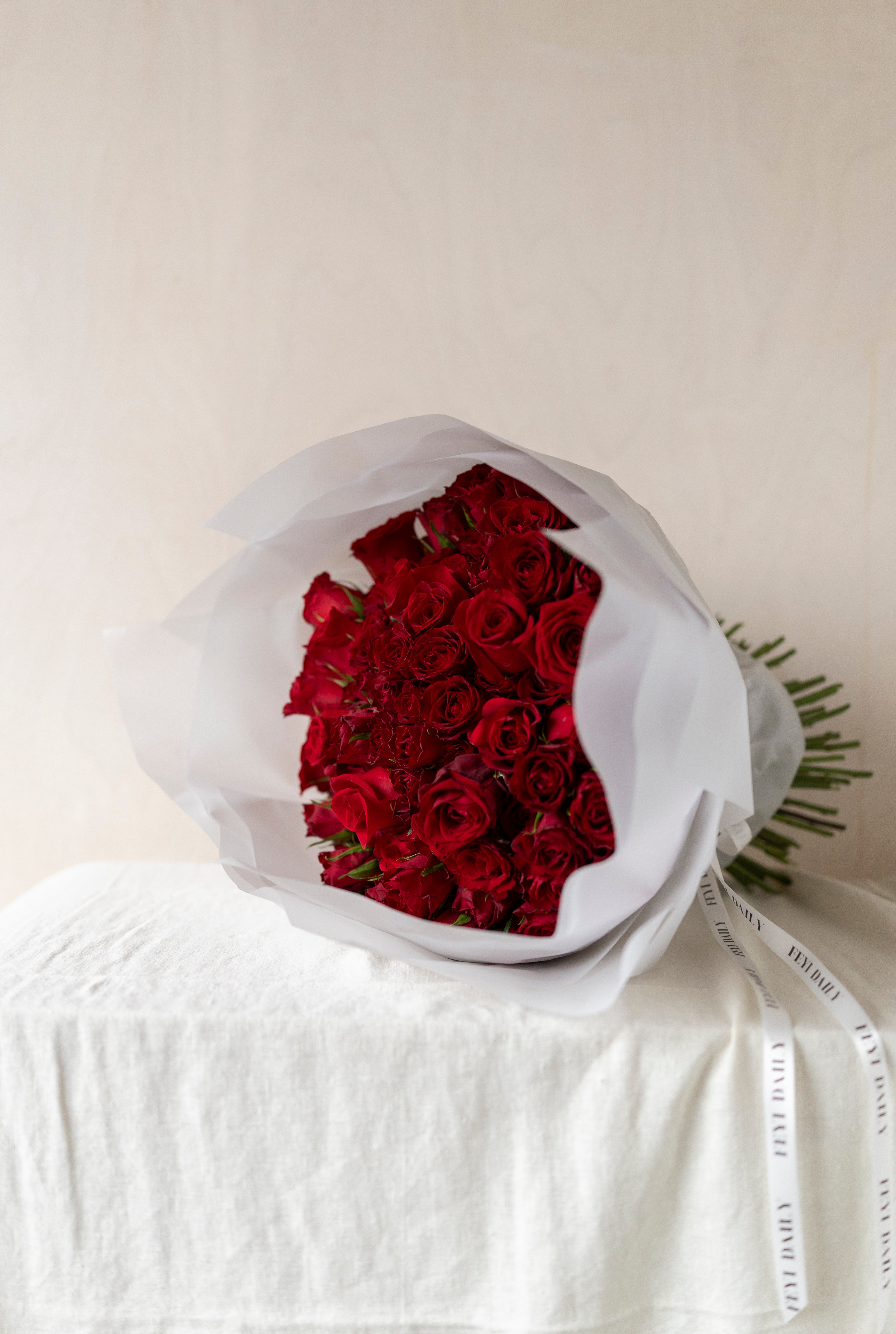 Every bouquet rocks at least 8-12 stems! They come fresh and wrapped to impress for those Insta-worthy aesthetics, obviously! Every bouquet is hand-tied with a ribbon and laid flat in a box.