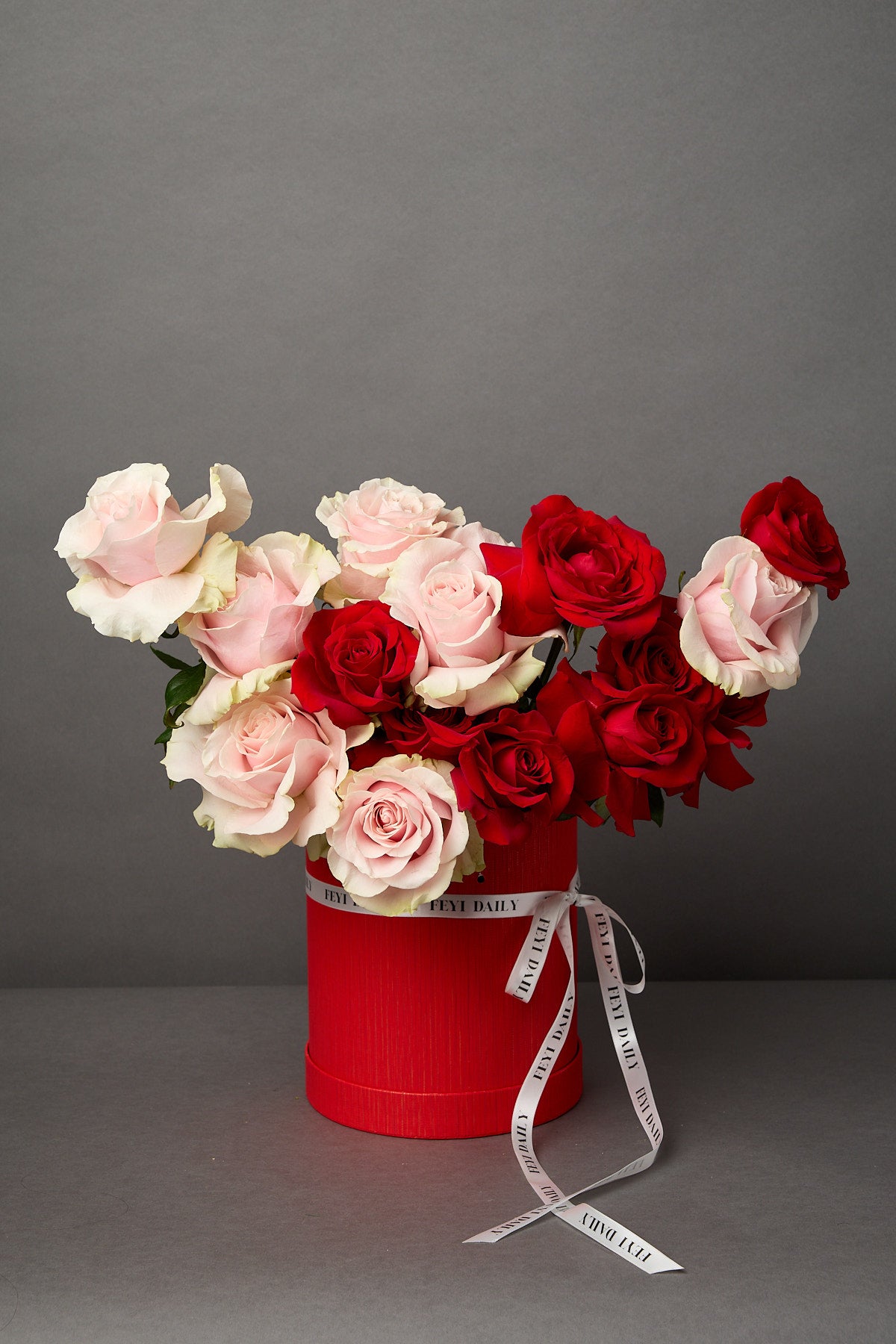 Red Velvet is a statement hat box designed to stop them in their tracks. Featuring a striking mix of deep red and soft blush roses, this arrangement balances bold romance with effortless elegance. Set in our signature red hat box and finished with feYi Daily ribbon, it’s the ultimate gesture for love, celebration or self-indulgence.